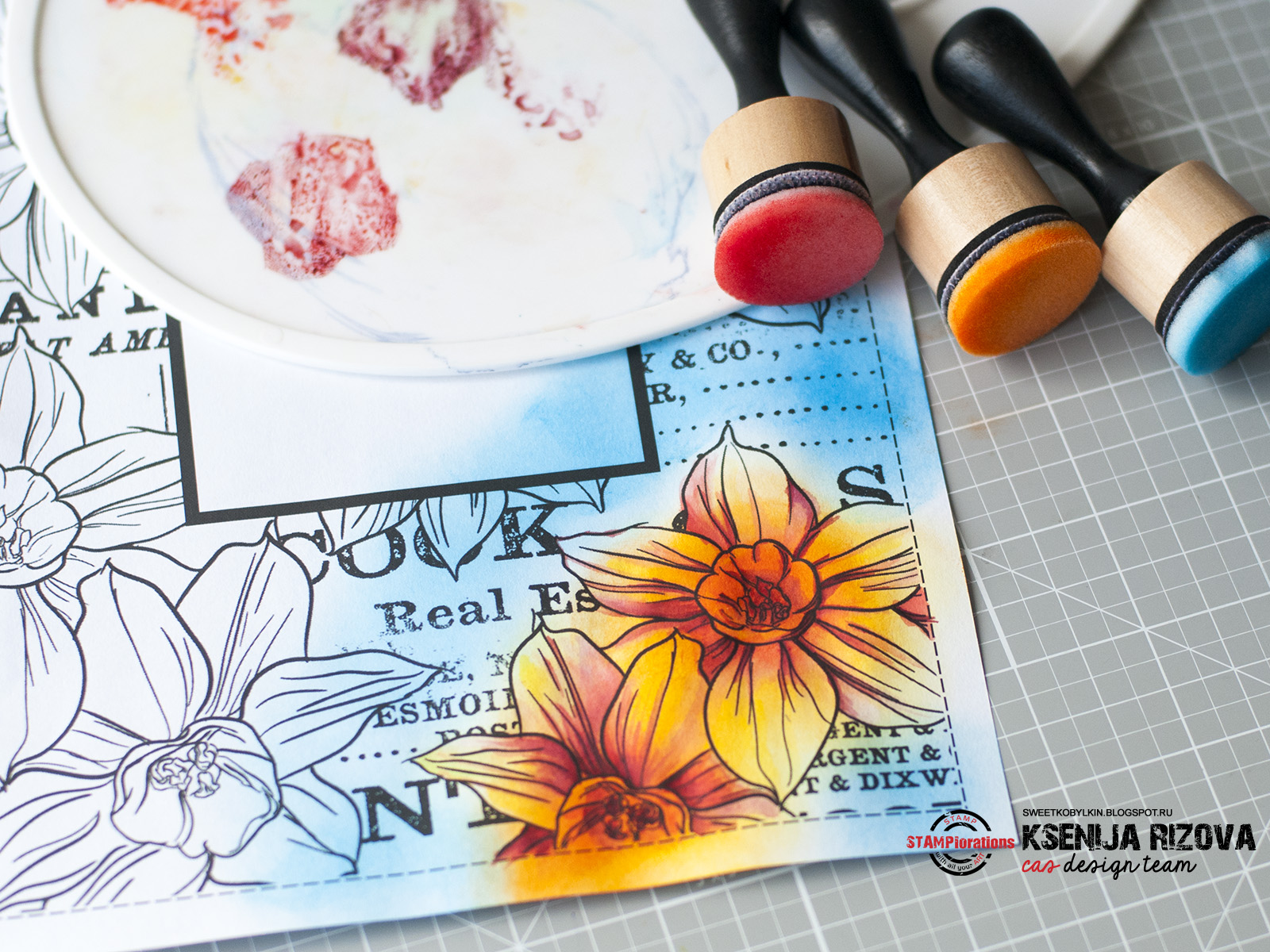 Ksenija colored two pages (the daffodils and sunflower pages) and used them to create two cards.