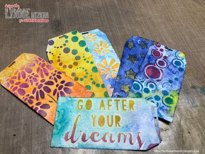 ReplyDeleteThank you Lynne for sharing all your gorgeous stenciled tags and photo steps. Good luck with your art venture. We will miss you, but look forward to your projects that you share on STAMPlorations. Hugs