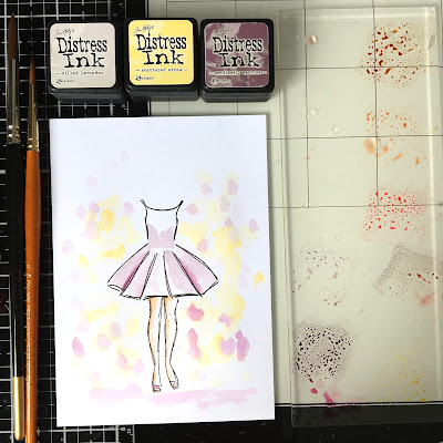 Using Distress Inks I coloured the dresses and backgrounds.