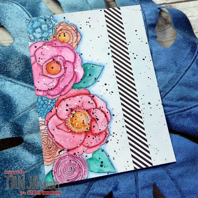 ReplyDeleteI love the bold striped strips of paper... or washi tape? They provide a beautiful contrast to the uncolored flowers. Just beautiful!